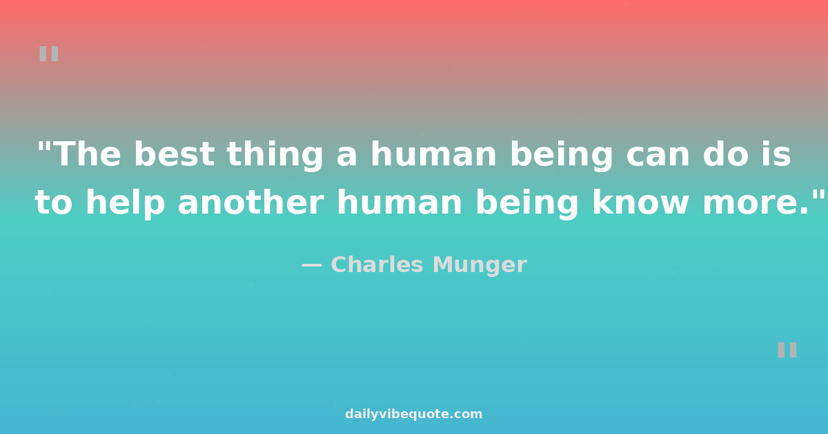 "The best thing a human being can do is to help another human being know more."
