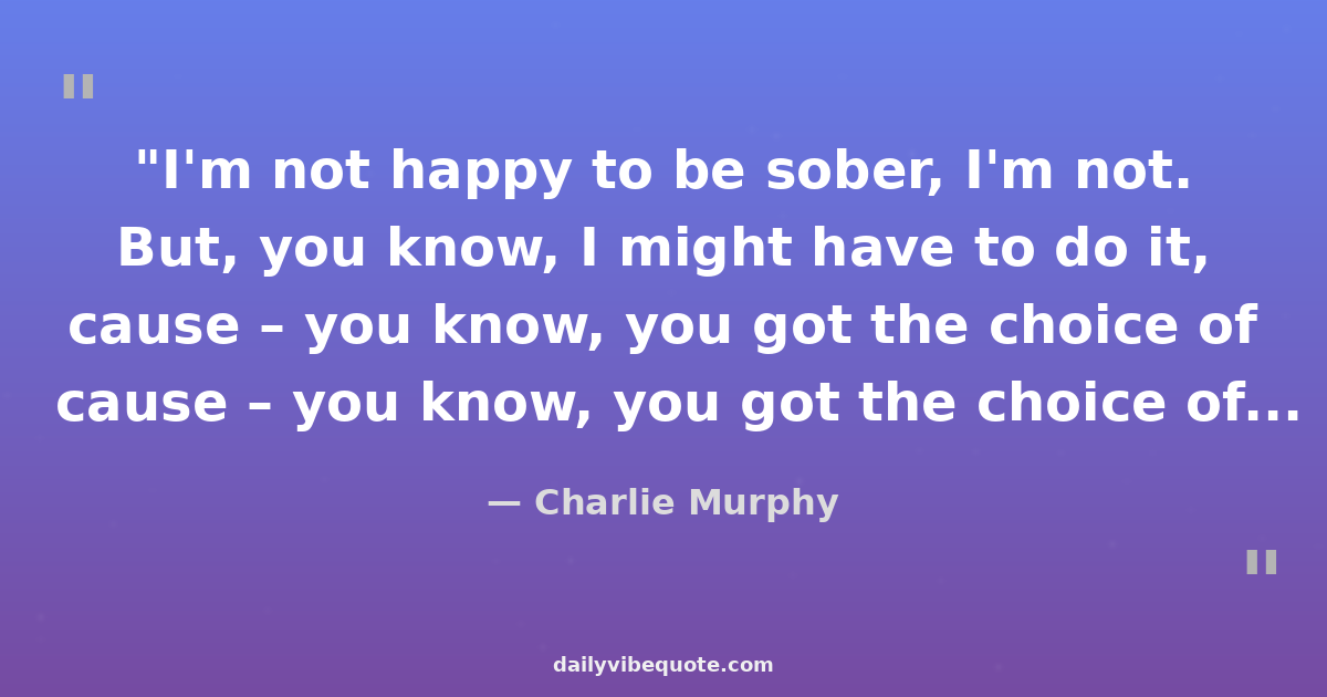"I'm not happy to be sober, I'm not. But, you know, I might have to do it, cause – you know, you got the choice of either, you know, being a functioning alcoholic or a – full-blown crackhead."