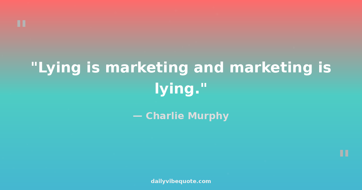 "Lying is marketing and marketing is lying."