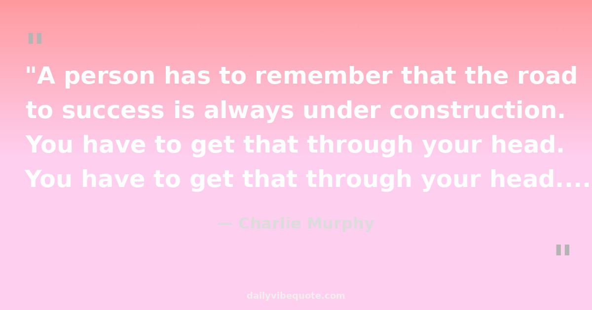 "A person has to remember that the road to success is always under construction. You have to get that through your head. That it is not easy becoming successful."