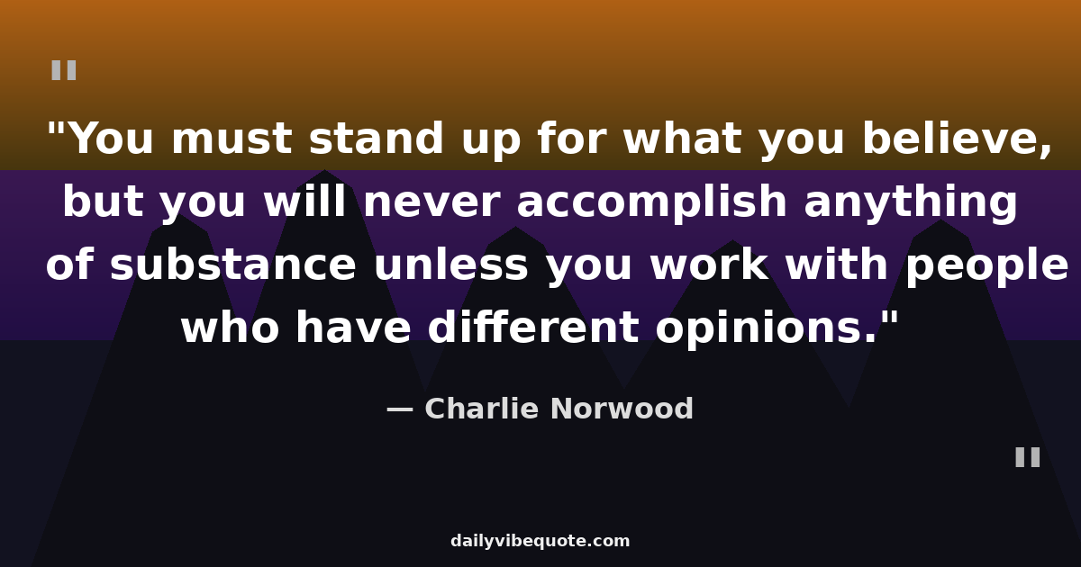 "You must stand up for what you believe, but you will never accomplish anything of substance unless you work with people who have different opinions."