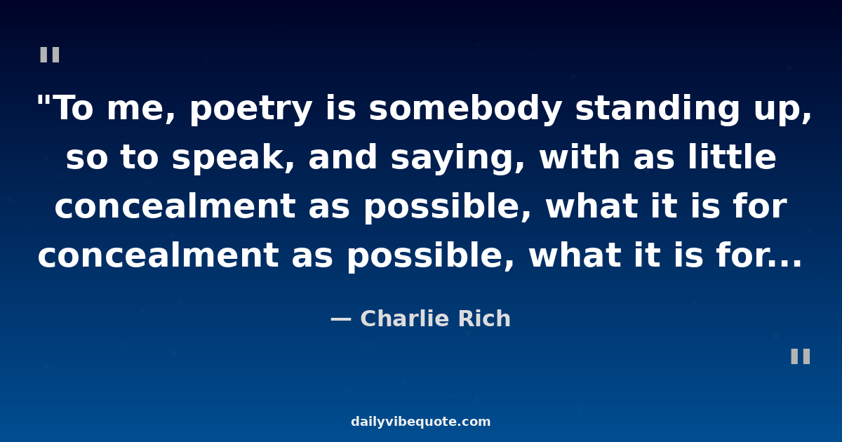 "To me, poetry is somebody standing up, so to speak, and saying, with as little concealment as possible, what it is for him or her to be on earth at this moment."