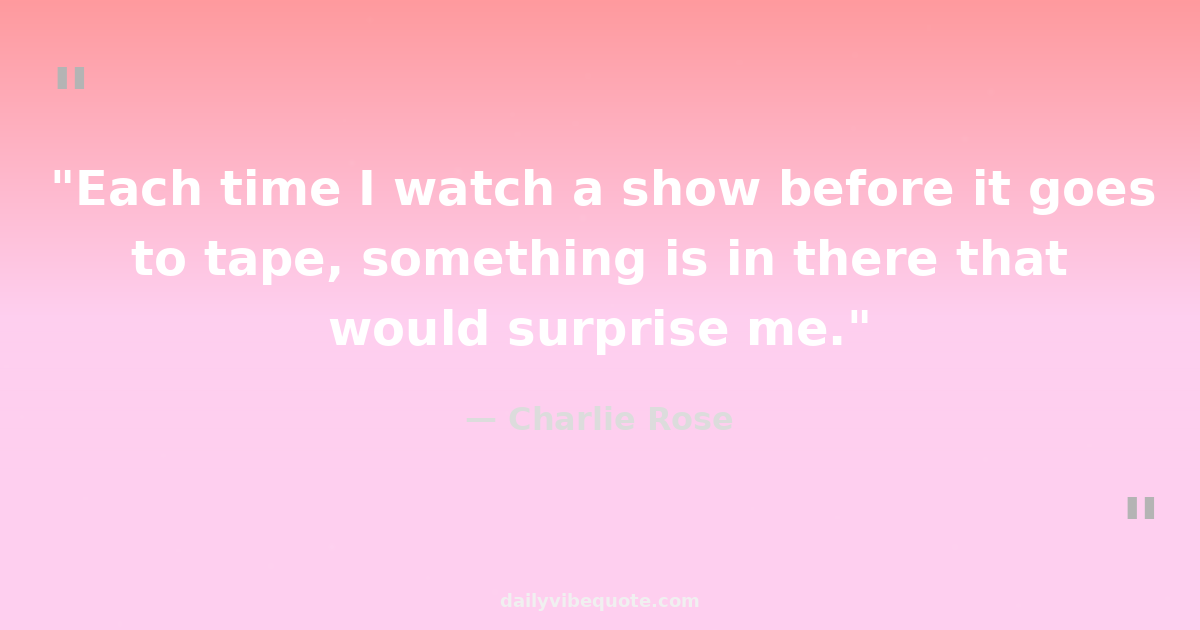 "Each time I watch a show before it goes to tape, something is in there that would surprise me."