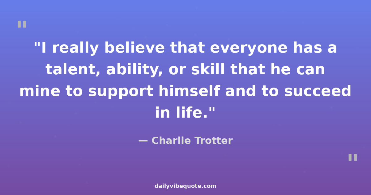 "I really believe that everyone has a talent, ability, or skill that he can mine to support himself and to succeed in life."