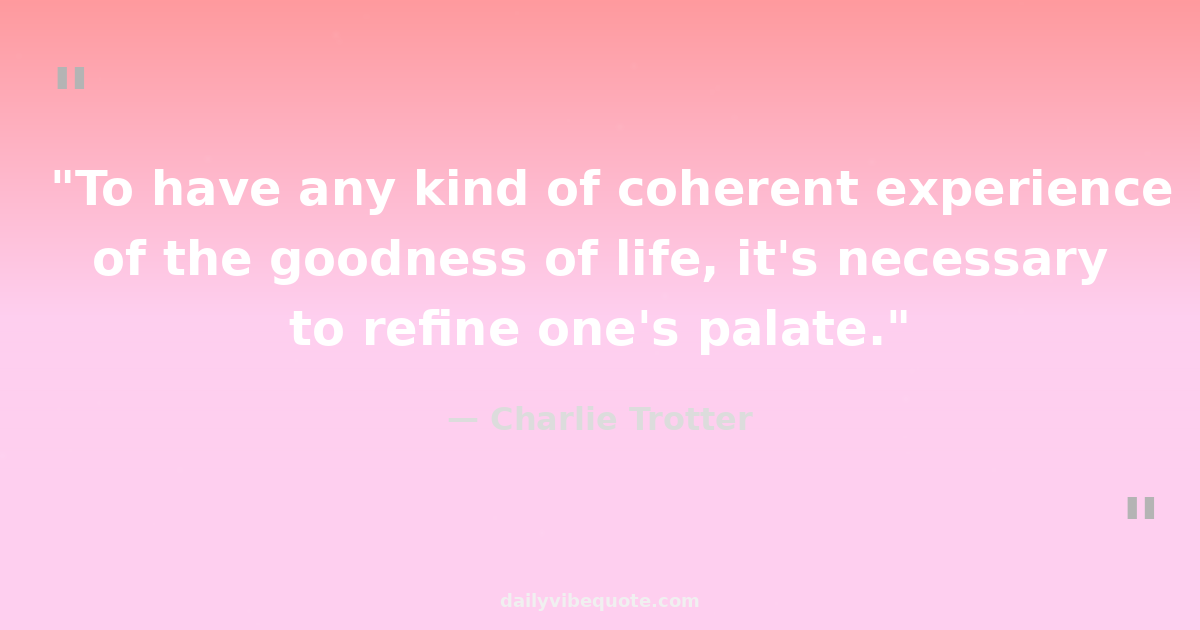 "To have any kind of coherent experience of the goodness of life, it's necessary to refine one's palate."