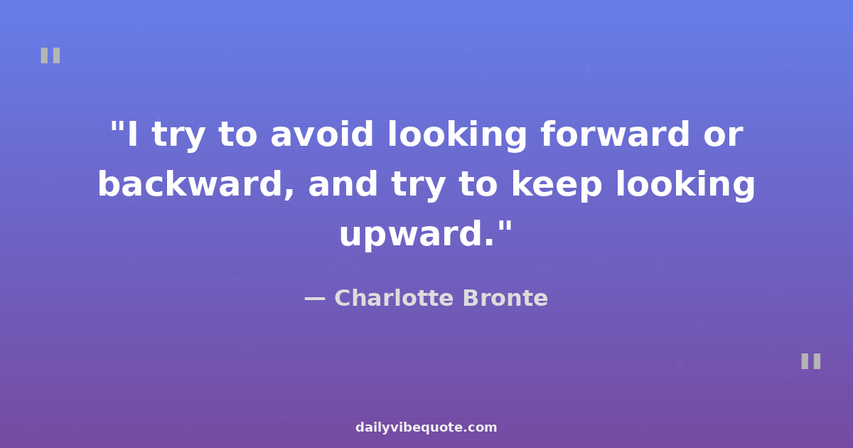 "I try to avoid looking forward or backward, and try to keep looking upward."