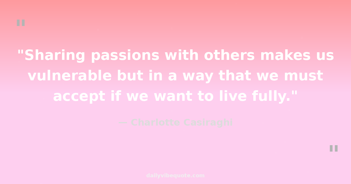 "Sharing passions with others makes us vulnerable but in a way that we must accept if we want to live fully."