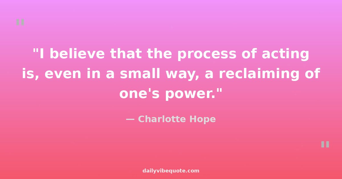 "I believe that the process of acting is, even in a small way, a reclaiming of one's power."