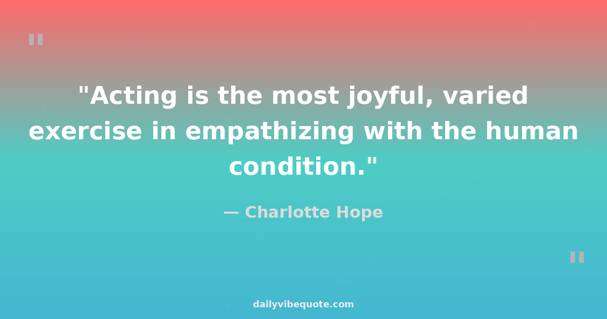 "Acting is the most joyful, varied exercise in empathizing with the human condition."