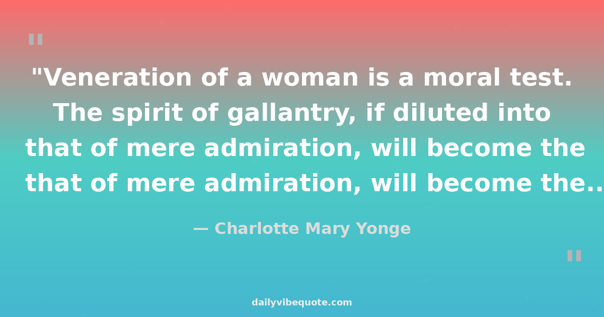 "Veneration of a woman is a moral test. The spirit of gallantry, if diluted into that of mere admiration, will become the playful pastime of a frivolous man; but transferred to admiration for the sex, it will dwell in the heart of the lowest present and the loftiest absent."
