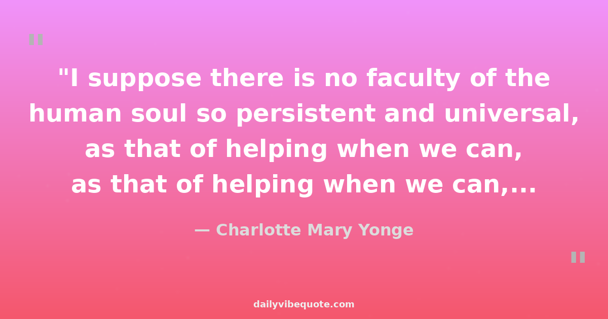 "I suppose there is no faculty of the human soul so persistent and universal, as that of helping when we can, succouring and going to the rescue of those whom we see suffer."