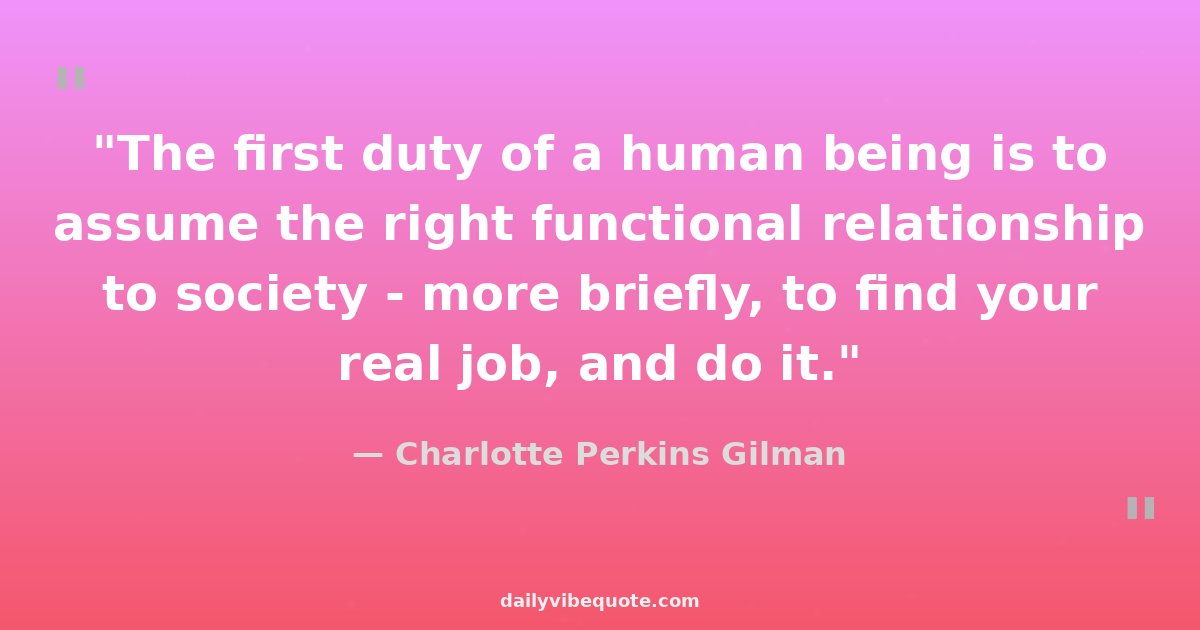 "The first duty of a human being is to assume the right functional relationship to society - more briefly, to find your real job, and do it."