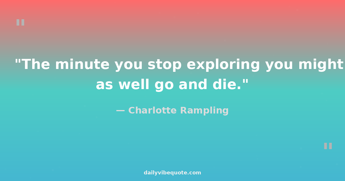 "The minute you stop exploring you might as well go and die."