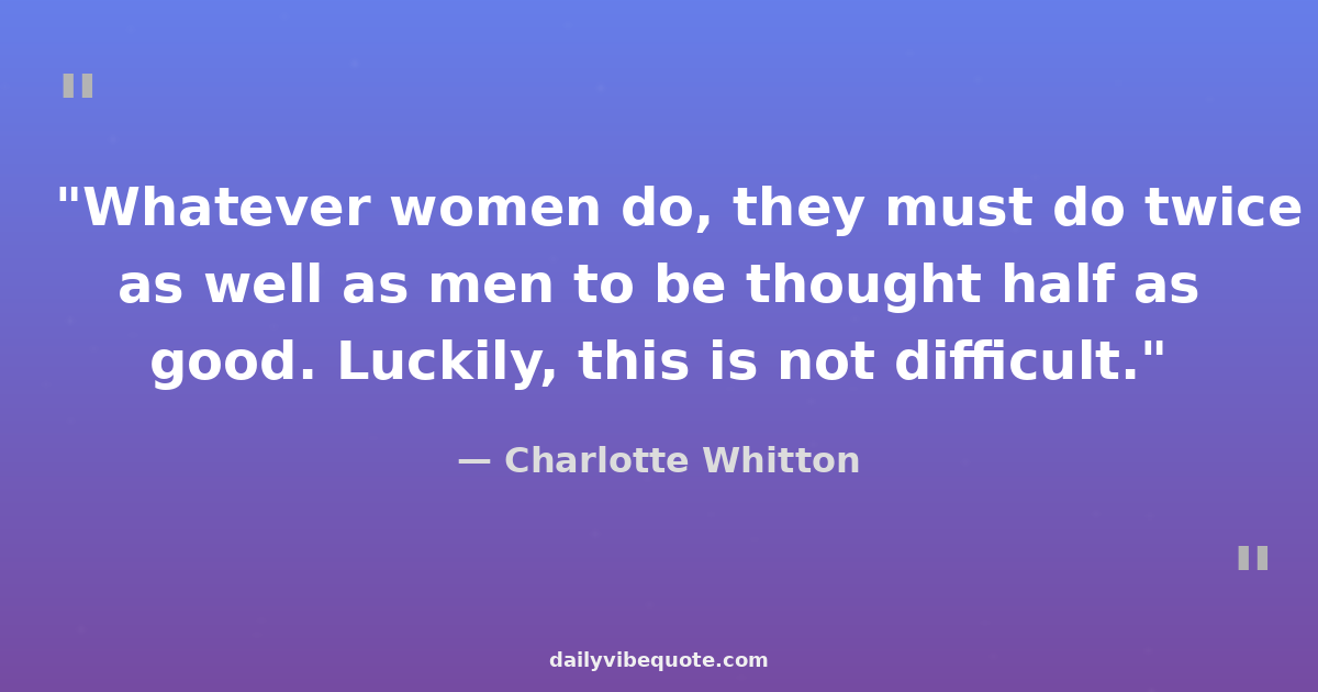"Whatever women do, they must do twice as well as men to be thought half as good. Luckily, this is not difficult."