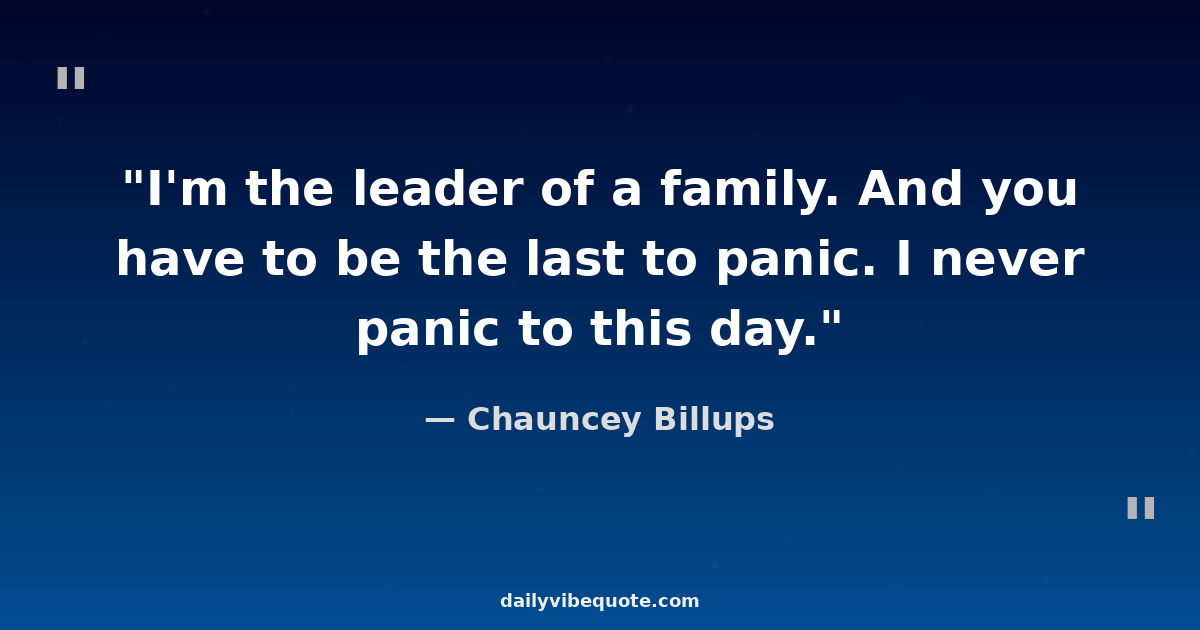 "I'm the leader of a family. And you have to be the last to panic. I never panic to this day."