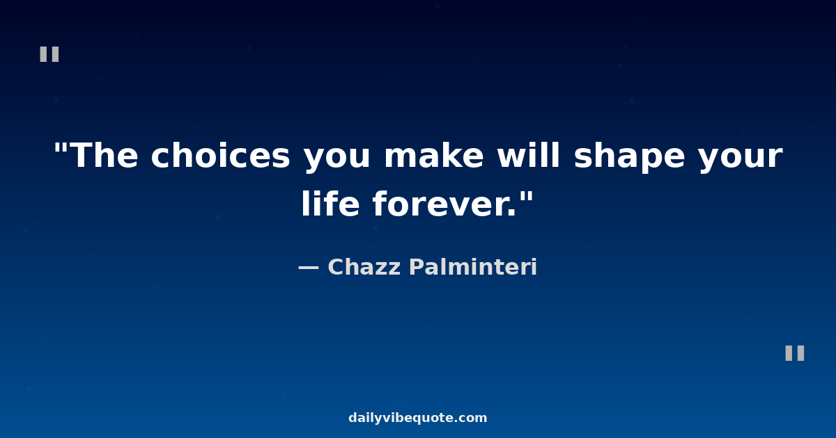"Your life is a result of the choices you make... If you don't like your life, it is time to start making better choices."