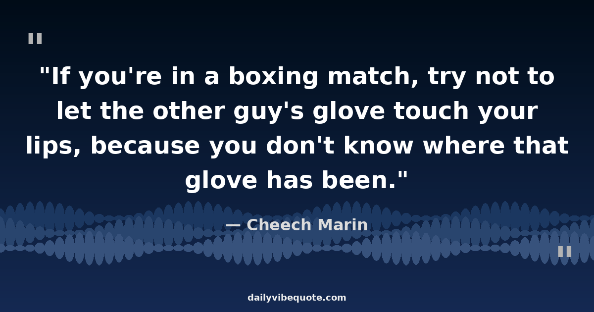 "If you're in a boxing match, try not to let the other guy's glove touch your lips, because you don't know where that glove has been."