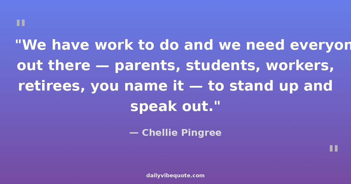 "We have work to do and we need everyone out there — parents, students, workers, retirees, you name it — to stand up and speak out."