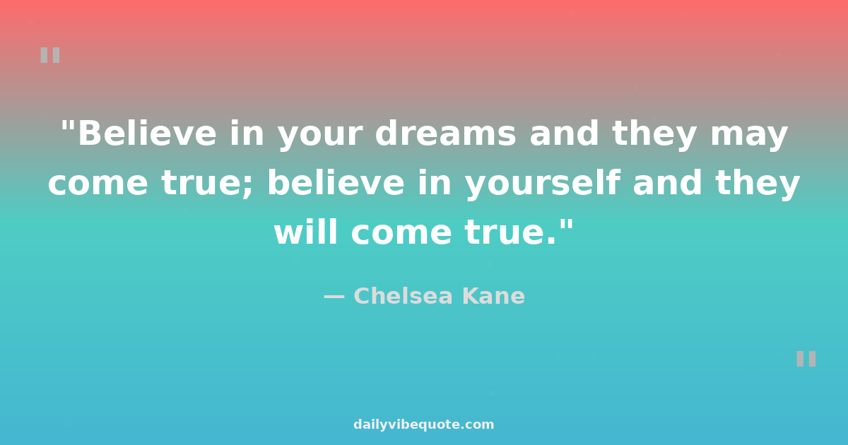 "Believe in your dreams and they may come true; believe in yourself and they will come true."