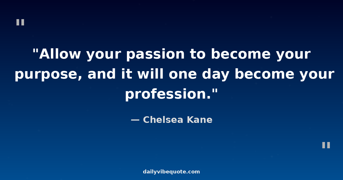 "Allow your passion to become your purpose, and it will one day become your profession."