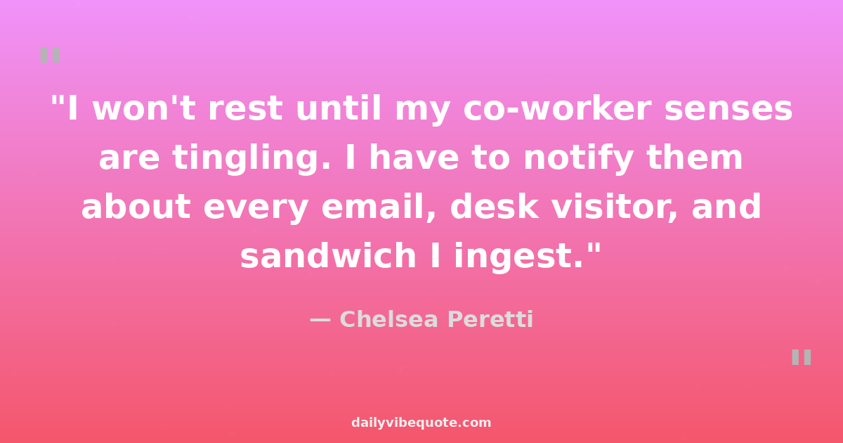 "I won't rest until my co-worker senses are tingling. I have to notify them about every email, desk visitor, and sandwich I ingest."