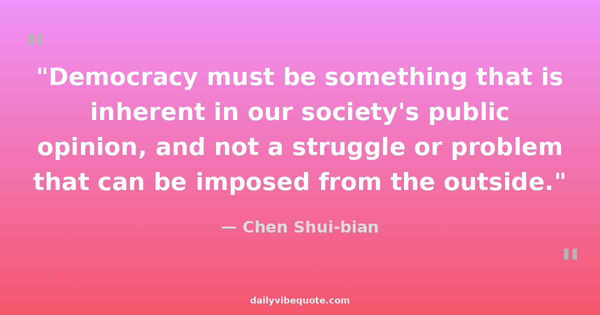 "Democracy must be something that is inherent in our society's public opinion, and not a struggle or problem that can be imposed from the outside."