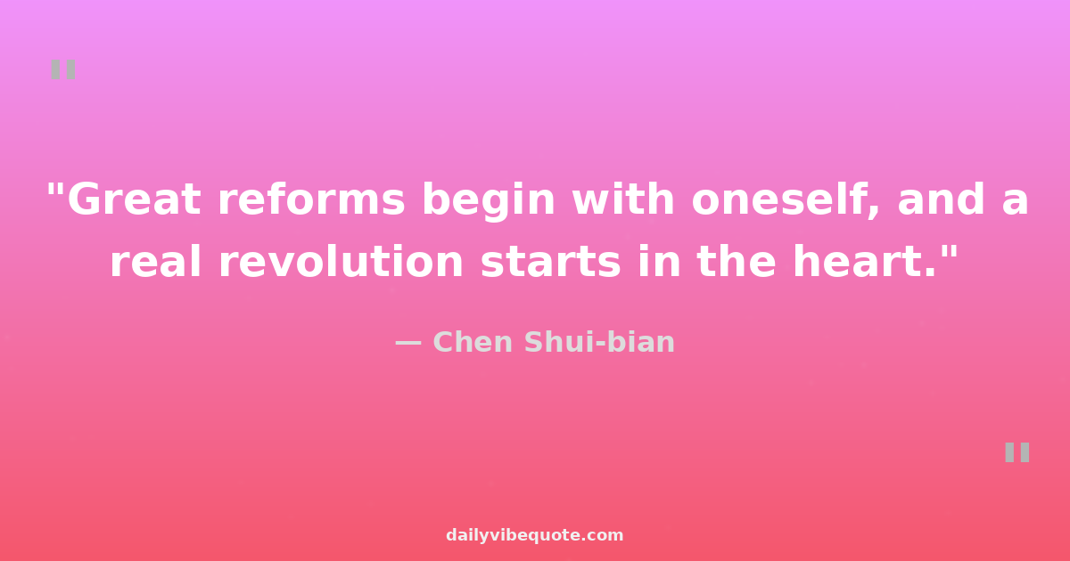 "Great reforms begin with oneself, and a real revolution starts in the heart."
