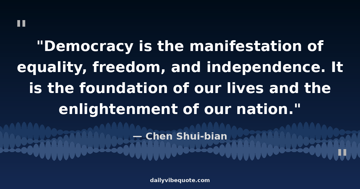 "Democracy is the manifestation of equality, freedom, and independence. It is the foundation of our lives and the enlightenment of our nation."