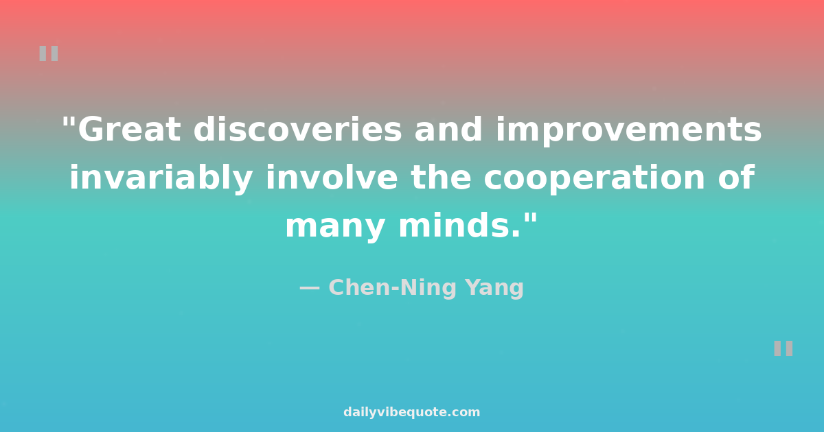 "Great discoveries and improvements invariably involve the cooperation of many minds."