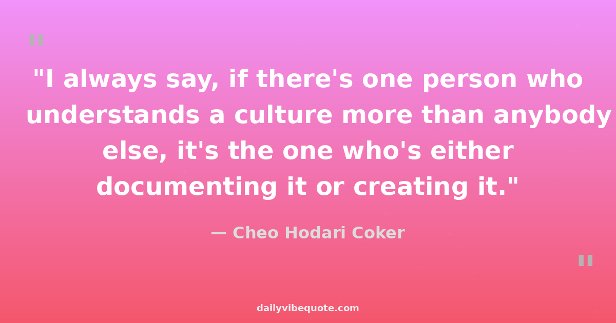 "I always say, if there's one person who understands a culture more than anybody else, it's the one who's either documenting it or creating it."