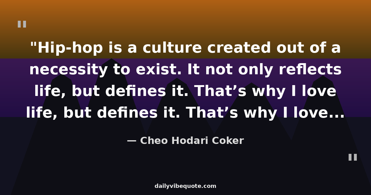 "Hip-hop is a culture created out of a necessity to exist. It not only reflects life, but defines it. That’s why I love it. It’s the closest thing we’ve got to black culture."