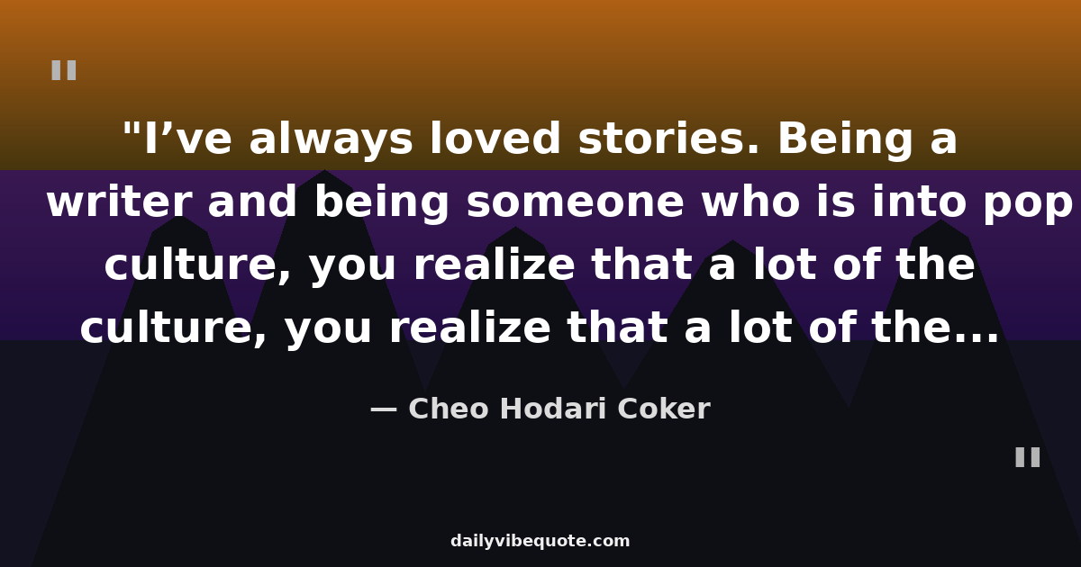 "I’ve always loved stories. Being a writer and being someone who is into pop culture, you realize that a lot of the stories we’re drawn to are people who have the ability to tell their story the best."