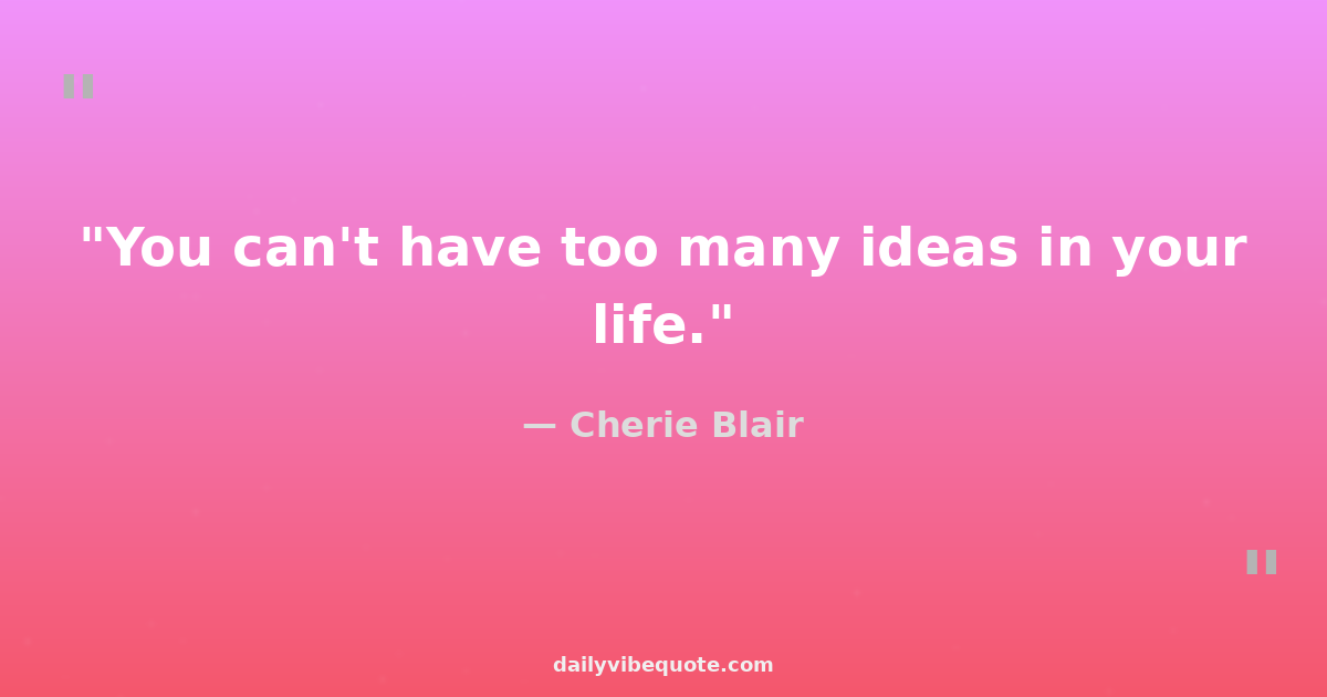 "You can't have too many ideas in your life."