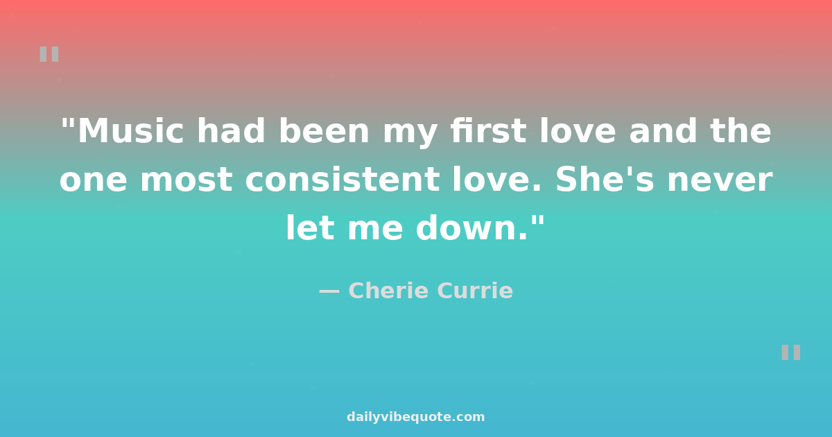 "Music had been my first love and the one most consistent love. She's never let me down."