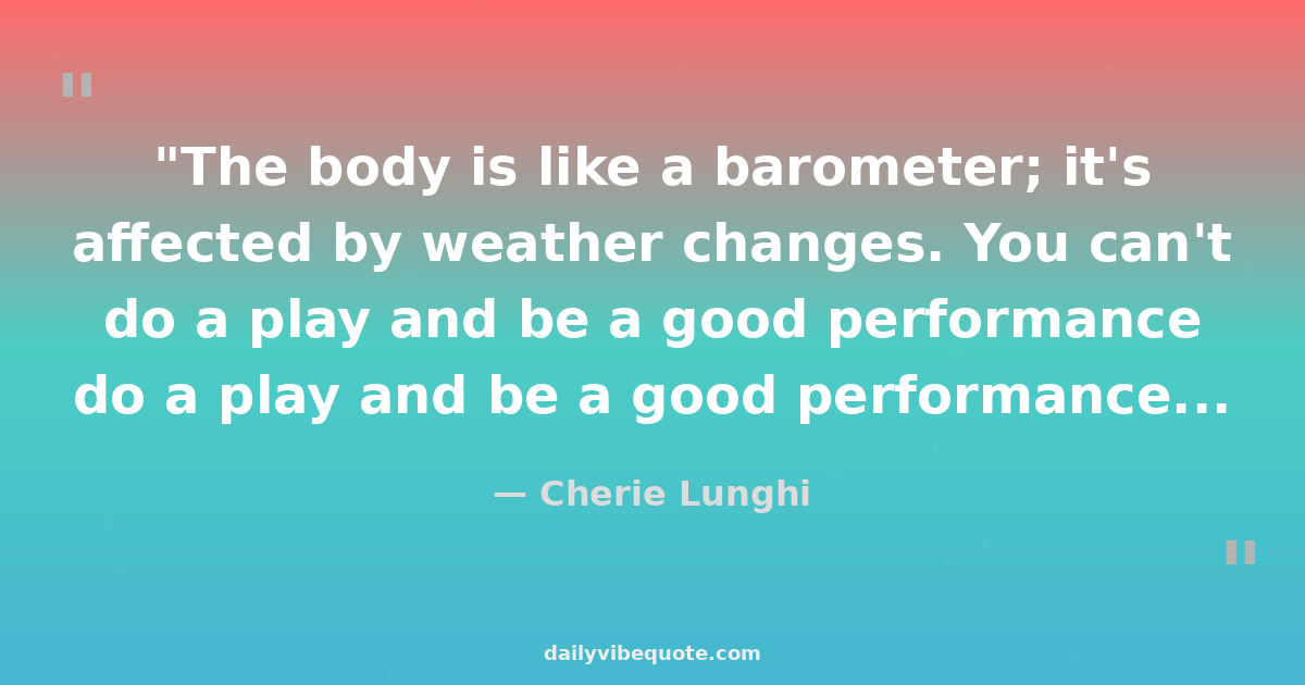 "The body is like a barometer; it's affected by weather changes. You can't do a play and be a good performance artist unless you feel good about yourself."