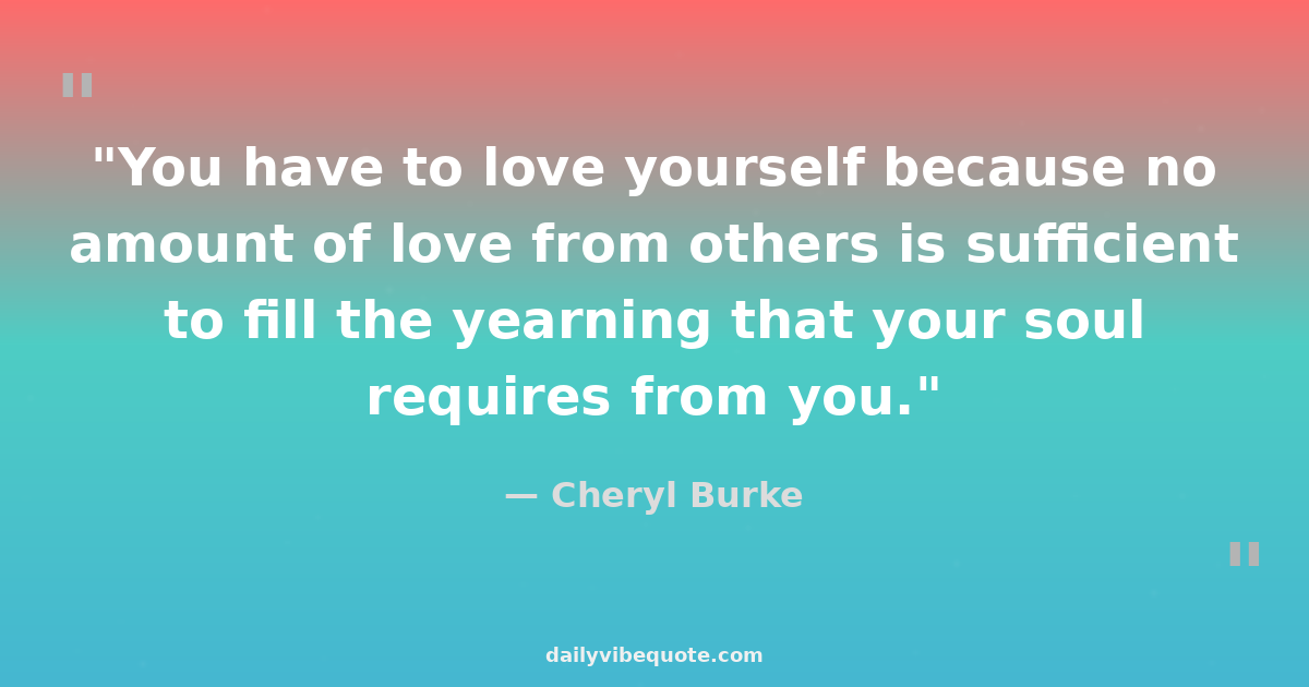 "You have to love yourself because no amount of love from others is sufficient to fill the yearning that your soul requires from you."