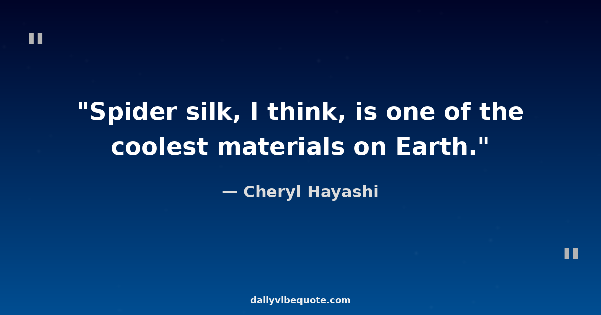 "Spider silk, I think, is one of the coolest materials on Earth."