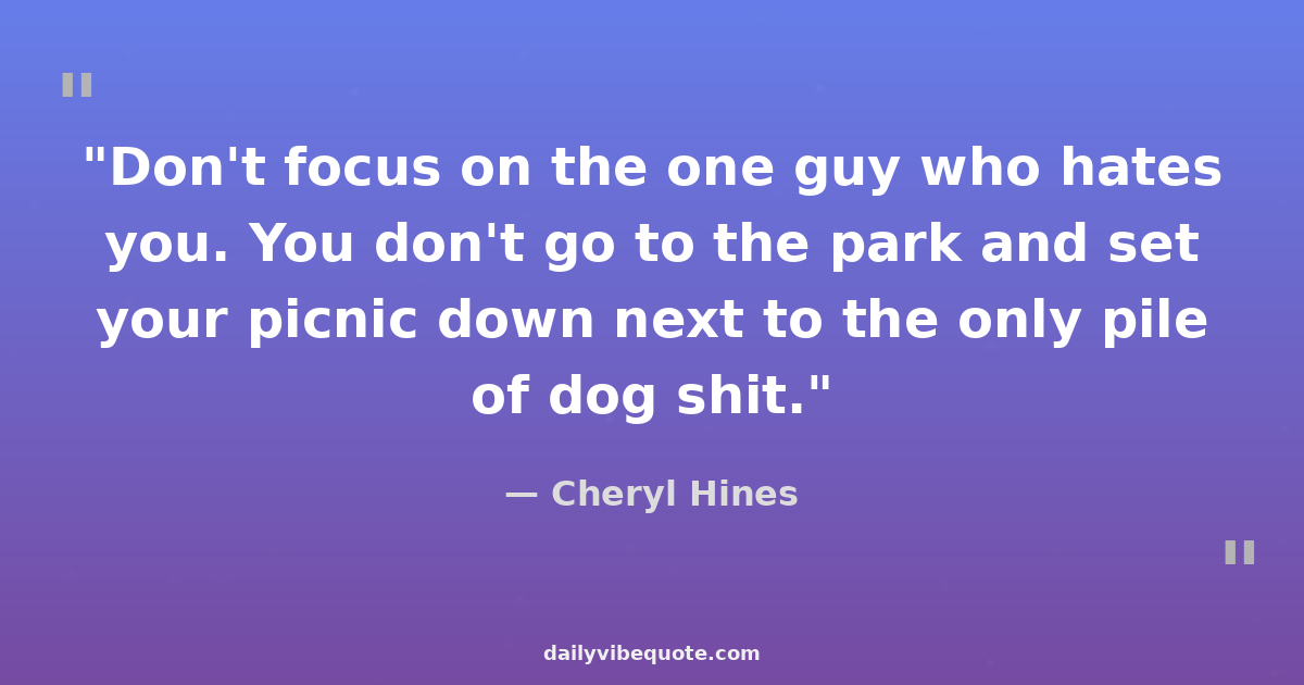 "Don't focus on the one guy who hates you. You don't go to the park and set your picnic down next to the only pile of dog shit."