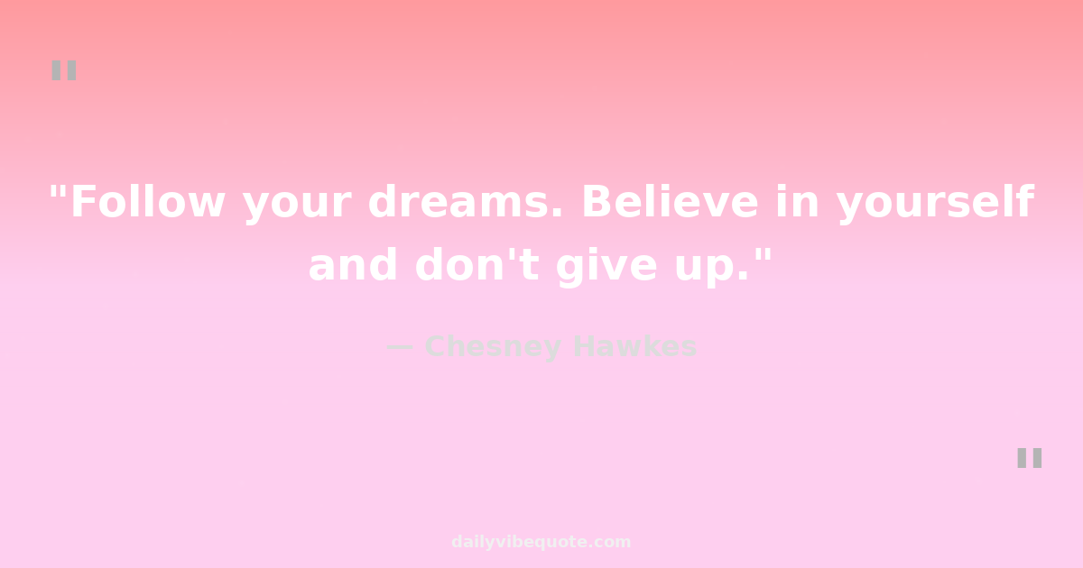 "You never know what the future holds for you, so always follow your dreams."