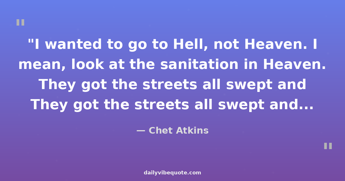 "I wanted to go to Hell, not Heaven. I mean, look at the sanitation in Heaven. They got the streets all swept and shiny. I said, 'Who wants to live in a place like that?'"