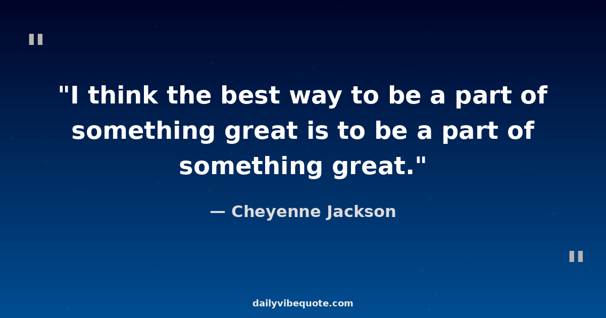 "I think the best way to be a part of something great is to be a part of something great."