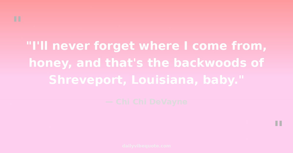 "I'll never forget where I come from, honey, and that's the backwoods of Shreveport, Louisiana, baby."