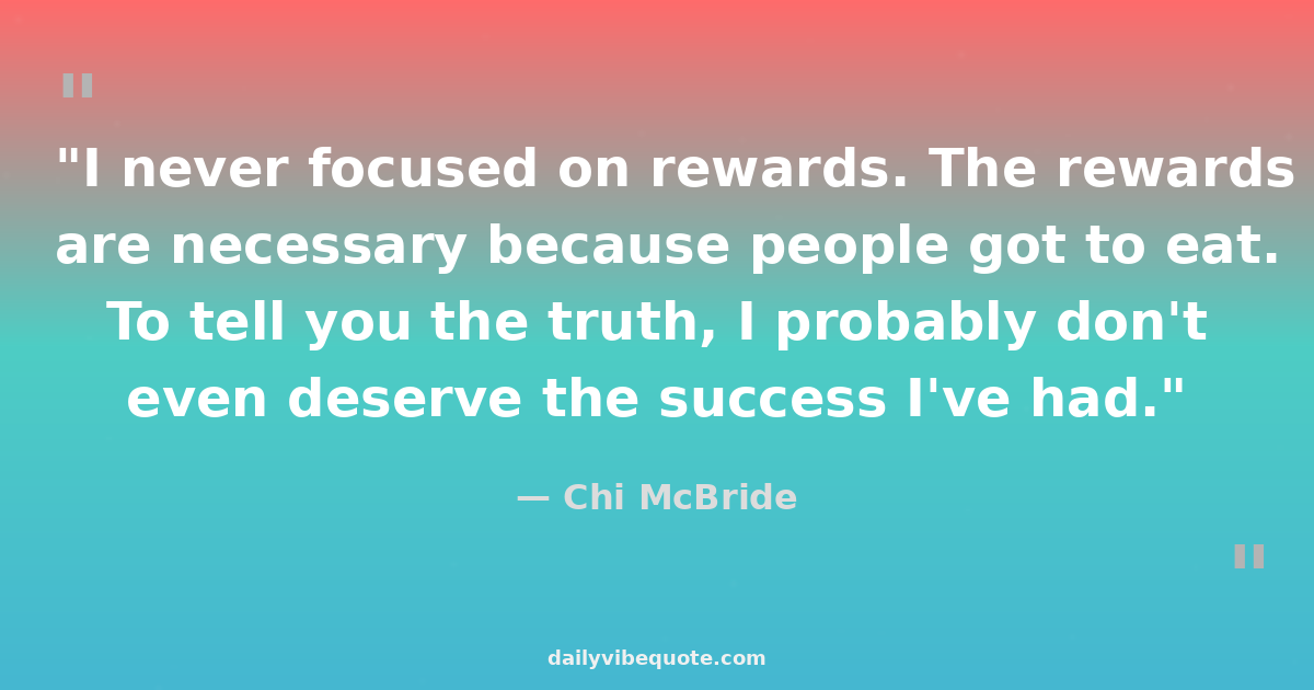 "I never focused on rewards. The rewards are necessary because people got to eat. To tell you the truth, I probably don't even deserve the success I've had."