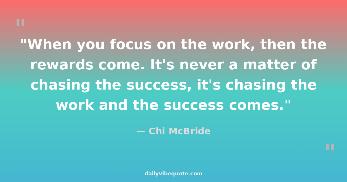 "When you focus on the work, then the rewards come. It's never a matter of chasing the success, it's chasing the work and the success comes."