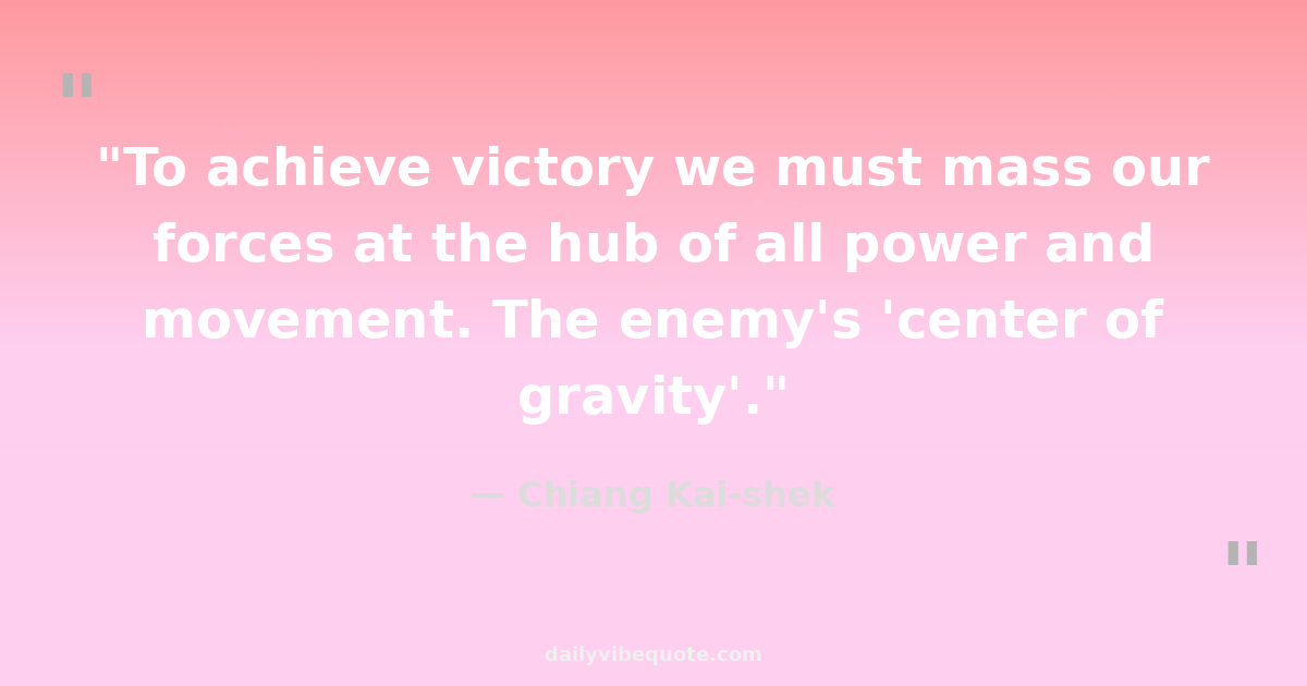 "To achieve victory we must mass our forces at the hub of all power and movement. The enemy's 'center of gravity'."