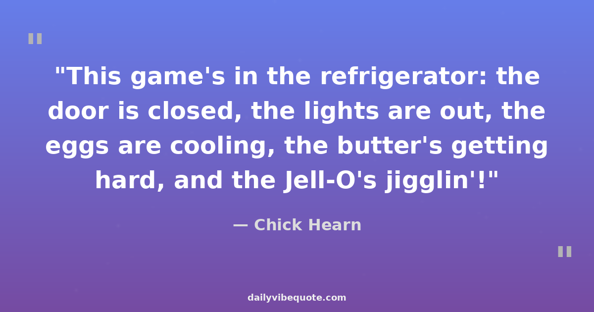 "This game's in the refrigerator: the door is closed, the lights are out, the eggs are cooling, the butter's getting hard, and the Jell-O's jigglin'!"