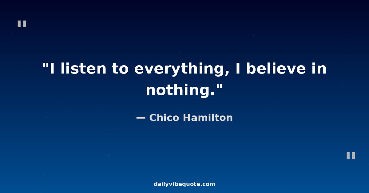Foreststorn 'Chico' Hamilton was an American jazz drummer and bandleader. He rose to prominence in the 1950s as part of the West Coast jazz scene, known for his unique approach to drumming and innovative compositions. Hamilton led various ensembles throughout his career and collaborated with numerous acclaimed artists. His music blended elements of cool jazz, modal jazz, and avant-garde, leaving a lasting impact on the jazz genre.