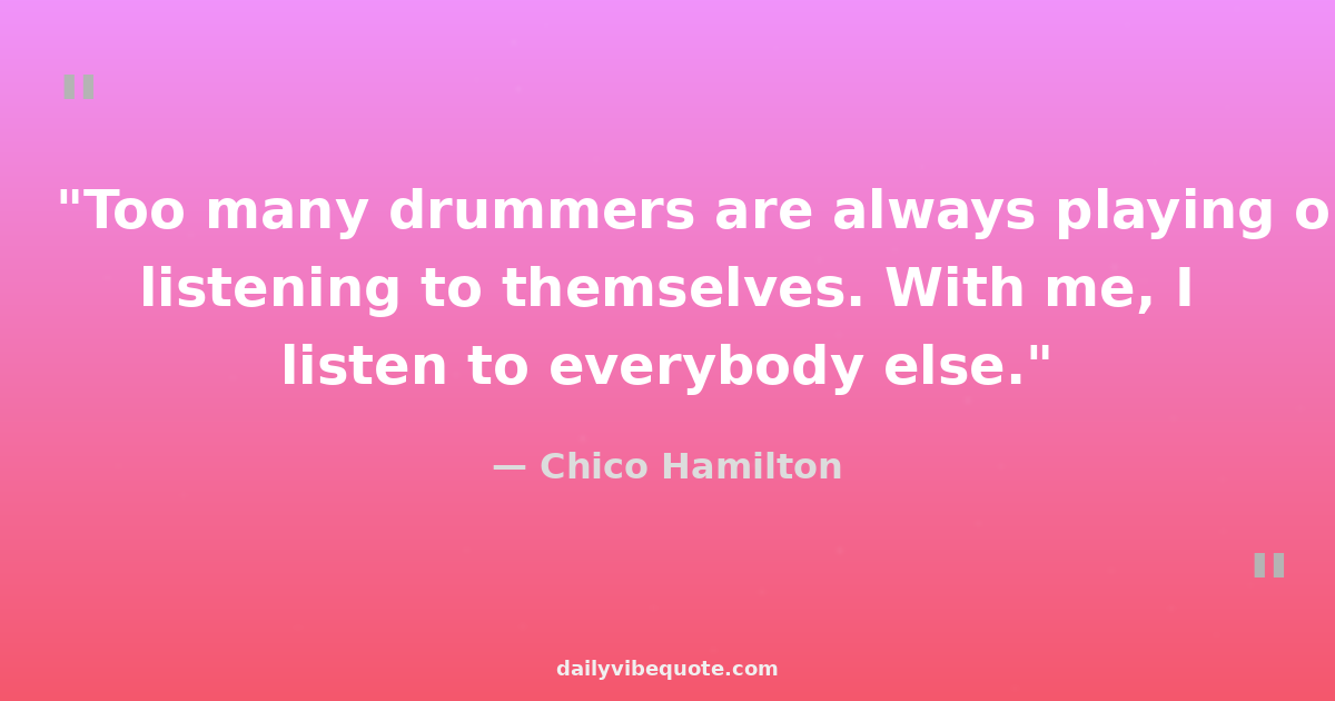 "Too many drummers are always playing or listening to themselves. With me, I listen to everybody else."