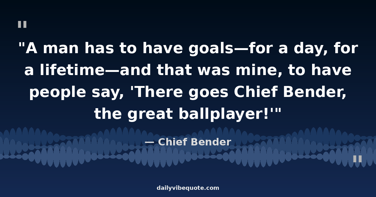 "A man has to have goals—for a day, for a lifetime—and that was mine, to have people say, 'There goes Chief Bender, the great ballplayer!'"