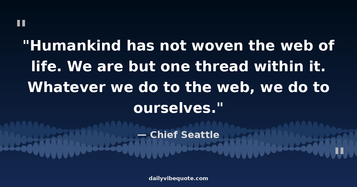 "Humankind has not woven the web of life. We are but one thread within it. Whatever we do to the web, we do to ourselves."
